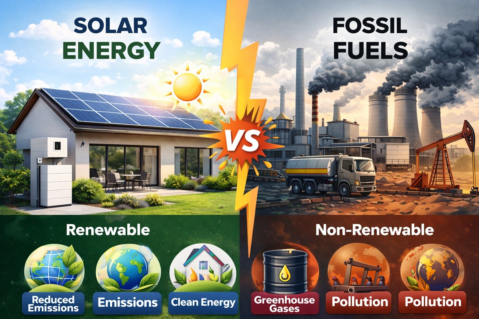 Energy is one of the most important elements of modern life. Every sector including transportation, industries, agriculture, communication, and households depends on energy. For many decades, fossil fuels such as coal, oil, and natural gas have been the primary sources of energy worldwide. However, with increasing environmental concerns, rising fuel prices, and advancements in renewable technologies, solar energy has emerged as a strong alternative. The comparison between solar energy and fossil fuels is now a key topic in discussions about the future of global energy systems. This article explains in detail the differences between solar energy and fossil fuels, including…